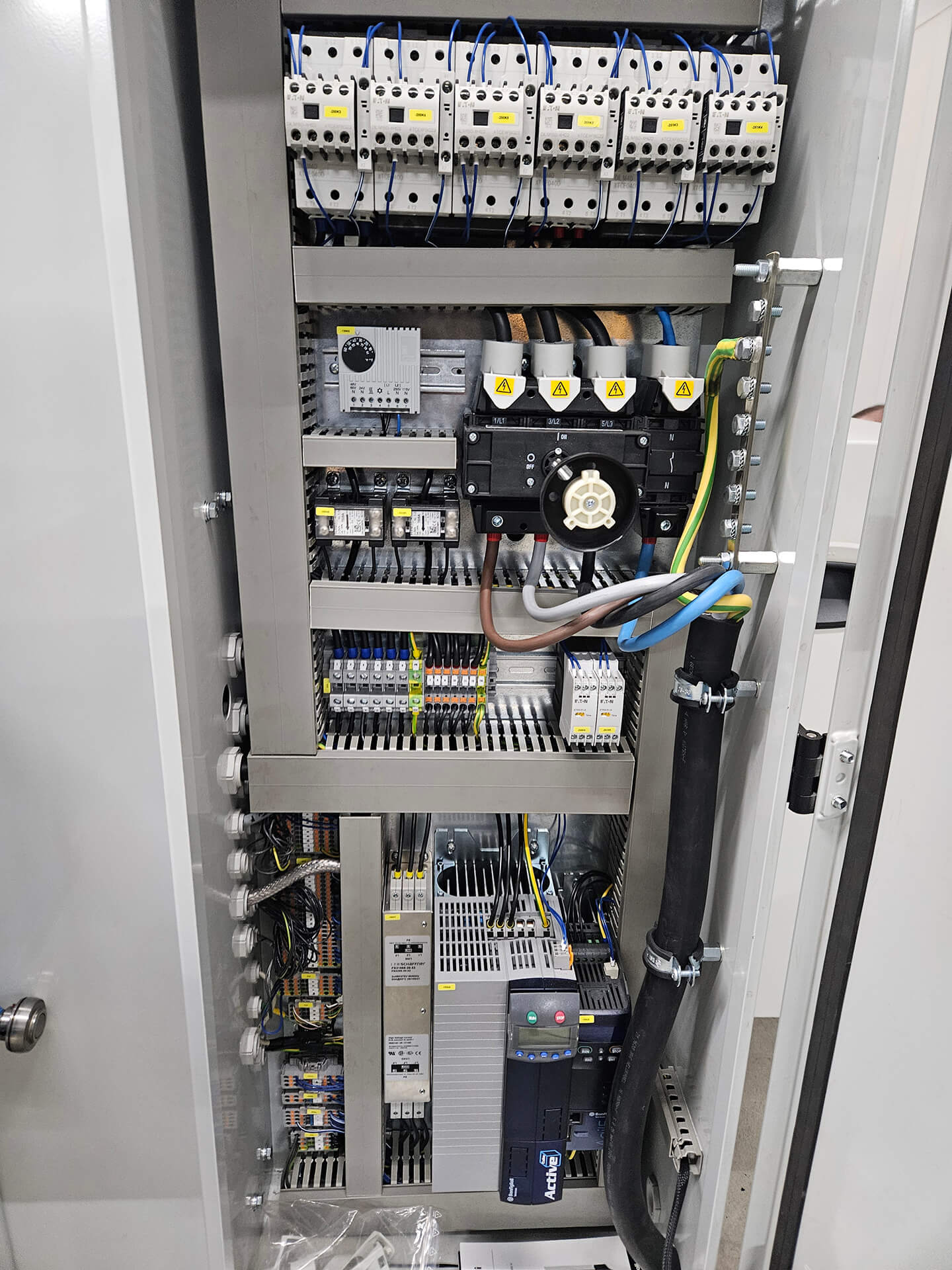 Een cruciaal onderdeel van het project was de bekabeling van de machines. Onze ervaren monteurs hebben zorgvuldig alle kabels aangelegd, waarbij we ervoor hebben gezorgd dat de installatie veilig, efficiënt en duurzaam is. De bekabeling is uitgevoerd volgens de hoogste standaarden, zodat de machines optimaal functioneren en onderhoudsvriendelijk zijn.